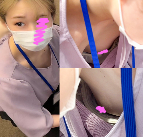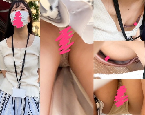 天国のような時間!同僚OLのコンビニ胸チラ!!あと片付け中の無防備胸チラ美人スタッフ!2名分