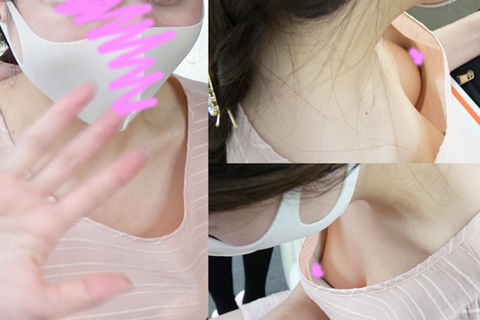 ②受付女性。久しぶりに会うお友達に大はしゃぎ。丁寧に説明しながら豪快な胸チラパンチラ。開場前の事前記入時にも丸見えシーン。