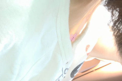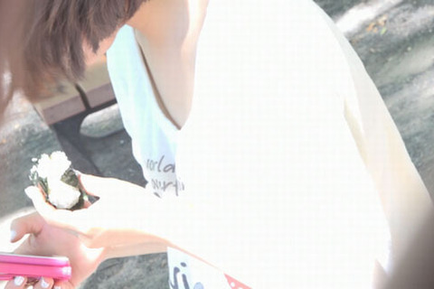毎日のルーティンで油断しているのか、オシャレもホドホドで胸元が無警戒。