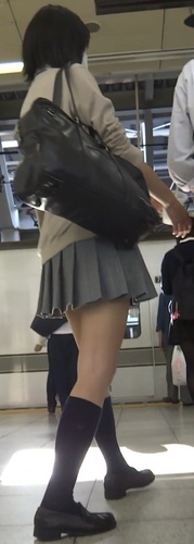 彼女は学校のミニスカ制服を着ていました。これはスカートの中が狙いどころです。しかしホーム上での撮影は、隣にいる彼氏にバレてしまいそうです。そこで電車に乗ってから勝負することにしました。