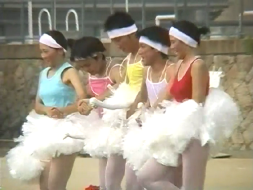 入場行進からはじまる。部活のユニフォーム姿でほぼ全員が行進してきます。かなり色々な部活があって、ユニフォームが好きな方には刺さると思います。水泳部は競泳水着の上に上半身だけジャケットをはおるという、下半身はハイレグの競泳水着をさらけだし、見ていてどきどきします。