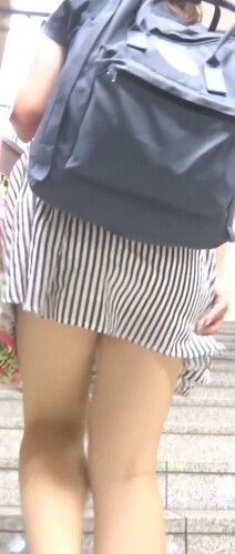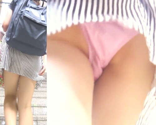 彼女は白と黒のボーダー柄の超ミニスカートを履いていました。これがスゴいミニ丈のスカートで、今にもパンツが見えそうになっていました。これはパンチラ間違いなしです。そこですぐにカメラをセットして撮影を開始しました。チャンスを逃すまいと彼女を追いかけていきます。