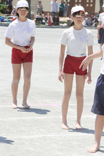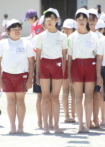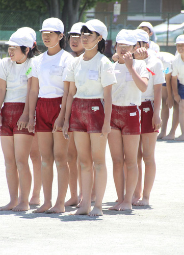 白く汚れていく組体チーム。