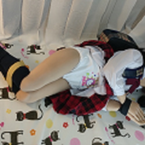【商品説明】今回はパンコレで同じような低身長ドールのお写真を販売されているオーナー様に刺激されまして、未夢ちゃんの手足を縛ってイタズラするシチュエーションで撮ってみました。
