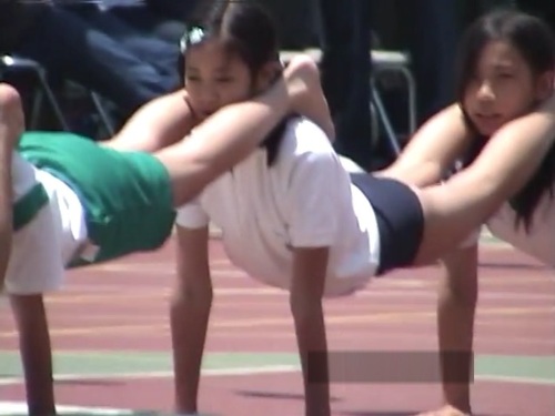 2部はブルマからショート(ハーフ?かなり長い)パンツに移行された中の紺ブルマの子がチラチラという、こういう映像も面白い。移行後の子はエメラルドグリーン基調のポリ速乾系体操服とハーフパンツに対し、白の綿系体操服と紺ブルマはIZUMIYAのシンプルな組み合わせ。ブルマの良さが際立つ。