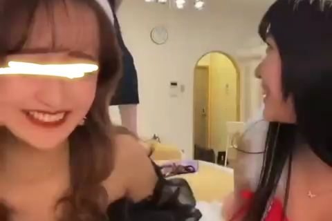 可愛いギャル集団がホテルでコスプレ配信です。