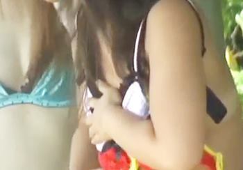 日焼け跡が眩しくて強風で丸出し状態に