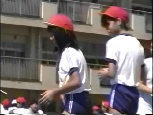 濃紺ブルマもいいですが、青ブルマも所々登場し、この編集で見ると鮮やかさの違いがあって面白いところです。