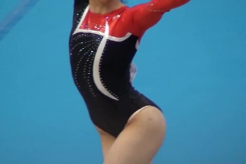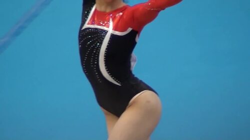 また、ぜっ74番の選手は床演技の途中からレオタードがお尻に食い込み、すでにお尻が半分丸見えに!