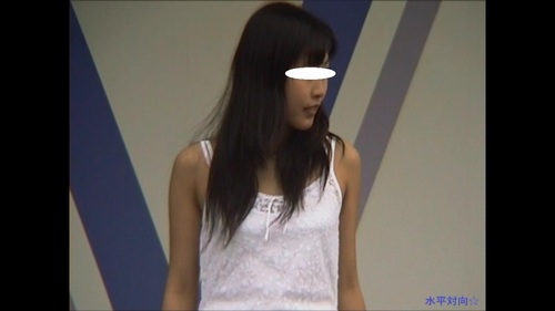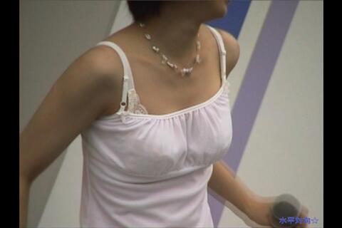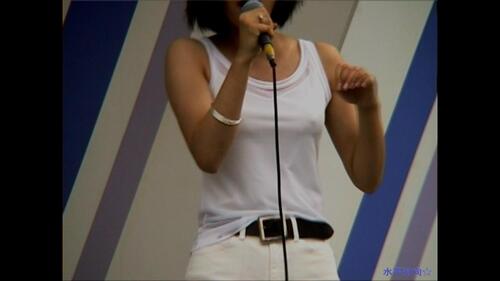 白い衣装でブラが透けたり紐がはみ出たりしています