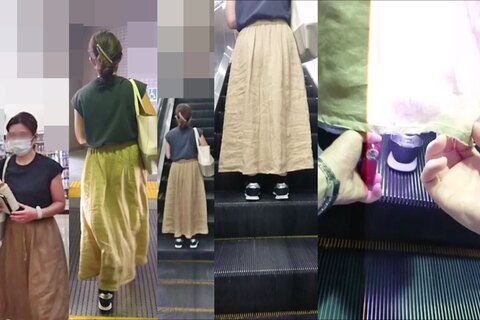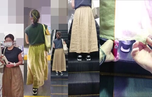 スカート内を撮影する瞬間をとらえた、決定的瞬間の映像です。