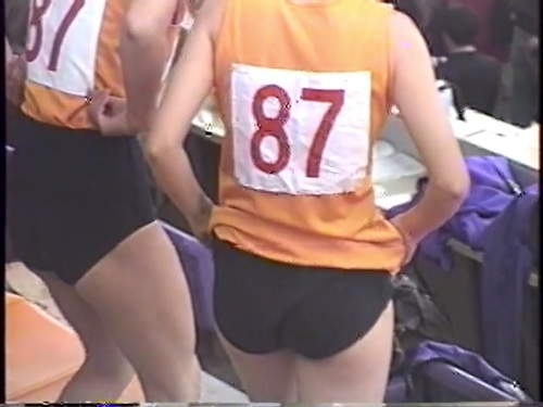 いろいろな学校の陸上ウエアの中に、体操服紺色ブルマちゃんが混じってます。