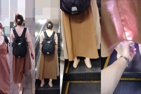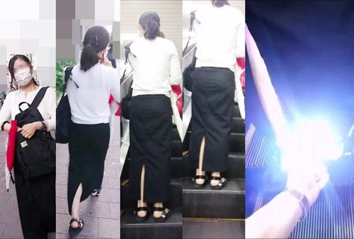 スカート内を撮影する瞬間をとらえた、決定的瞬間の映像です。
