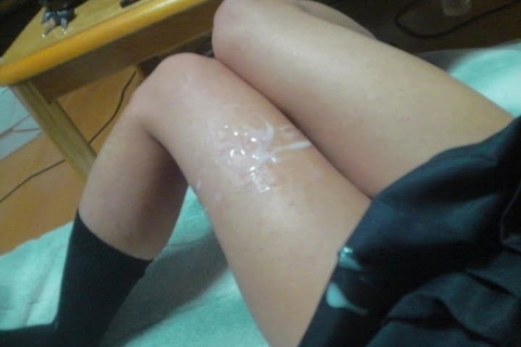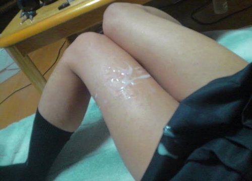 ④ 107枚 脚に射精 ・・・脚フェチの男性ならいつかはと。太ももやふくらはぎ、足の裏に射精している構図です。