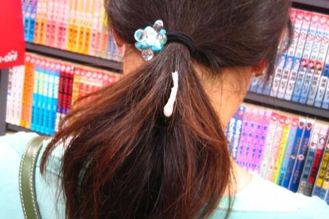 ⑧ 45枚 髪に射精 ・・・これはひどい。街を歩く女の子の髪にかけています。