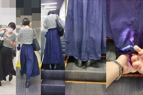 スカート内を撮影する瞬間をとらえた、決定的瞬間の映像です。