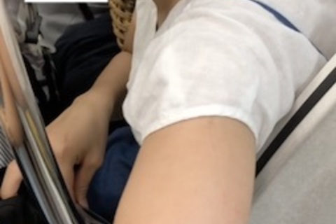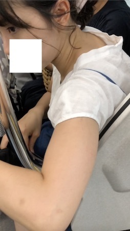 【電車内胸ちら】清純お姉さん、ワンピの胸元がガバガバすぎておっぱい丸見えで綺麗な先っぽまで♪