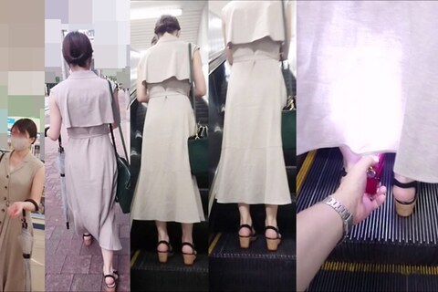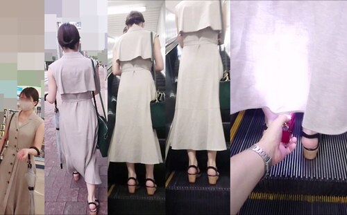 スカート内を撮影する瞬間をとらえた、決定的瞬間の映像です。
