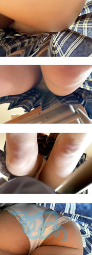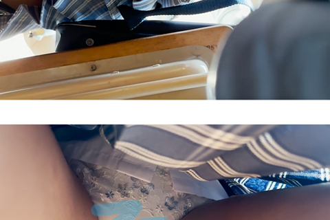 初投稿 教室休み時間青チェのパンチラ① 純白パンツ