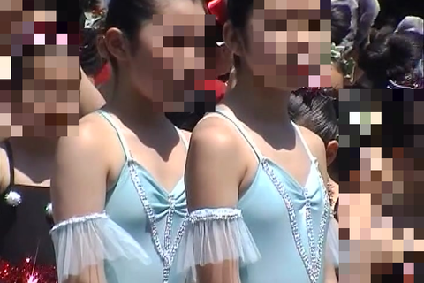 冒頭はピンクレオタード、ブルーレオタードのチームがメイン。