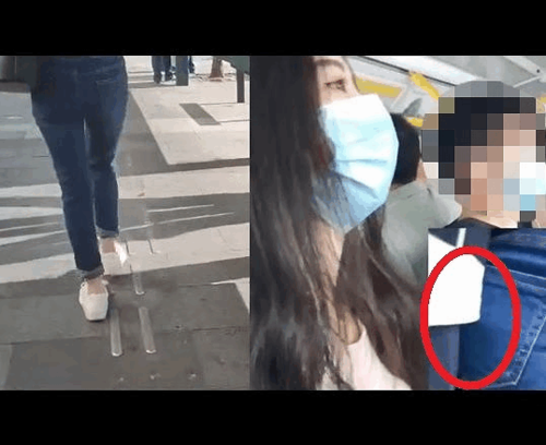 女性の斜め後ろに回り、女性のお尻に自分の手伸ばし触りにいきます。
