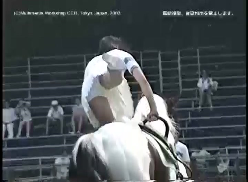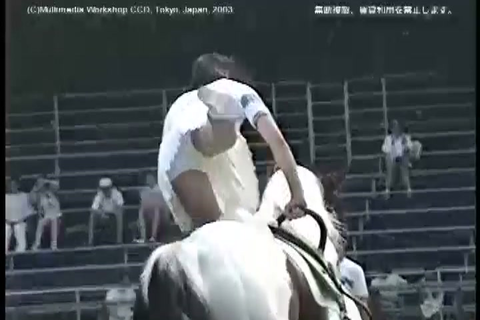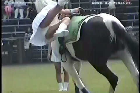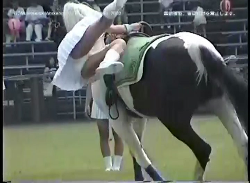 軽乗(ミニスカートでの乗馬演技)の様子。