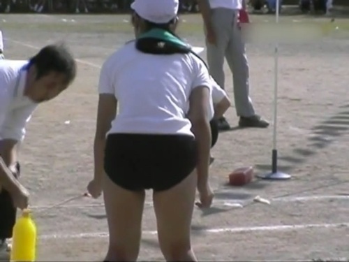 14:00あたりでゴールのテープを持つブルマちゃんがめちゃくちゃ可愛い子なんですが、変態教師が執拗に体を触れてなんとなく女の子は嫌がってるようなシーンがあります。(通報ですw)
