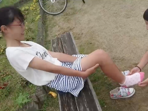Sちゃん4人が足をくすぐり合う動画です。