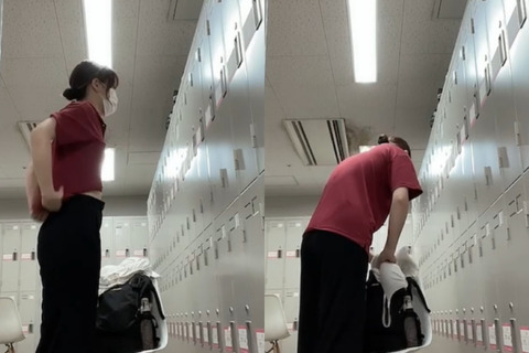 更衣室に一人だけなのを確認して、かなり大胆な着替えをする子です。