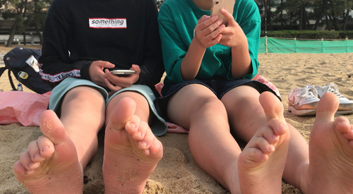 海辺 二人組 足指グーパー