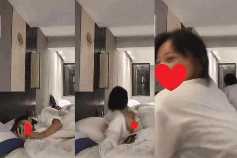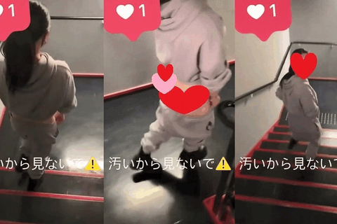 パン線ガッツリの女性が机の上でノリノリで踊ってみたり