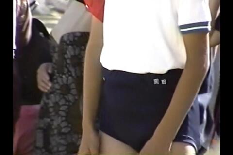 体操服は襟袖に学年カラーのライン入り、ブルマは全学年紺色ブルマ、そして運動靴までもが学年カラーに指定されている こういう学校稀に見ますが、珍しいですね 靴下の丈の長さも決まっていて、体操服もブルマインされ厳格な校則の校風のようです ブルマはブルマに向かって右上に名前刺繍、左上にメーカータグが見えます チラチラ見えるんですが、はっきりと見えずただ金色のロゴのように見えたのでNittai ニッタイのブルマかと思われます Nittai だと左上にタグ、デザインもローレグなあたりが当てはまりそうで、確率的に高そうです 今も書きましたが、かなりローレグでホットパンツのような特にフロント側がよくわかります 最近ハイレグブルマばかり見てたのでかなり違和感感じました でもお尻側はブルマ尻ですねw