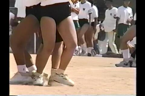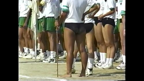 45:49 謎競技のあと、謎シーン 謎が続きますw テントの中で談笑する2人のブルマちゃん 一人は背が低いミニミニブルマちゃん、片方は背が高い ミニミニちゃんは意外にエロい体 背の高い子はお尻ドアップ 少し汚れた感じが丸 この2人のやりとりがしばらく続くんですが、ここを平然と撮影してるのもすごいです どういうやりとりなのか、男子の掛け声がうるさく聞こえませんw
