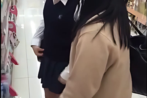 黒髪やや細めでミニスカ-トスタイルのいいJKです。2人並びでPフラッシュ