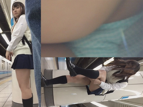 パンチラスクープ4!!電車待ちホームミニスカ制服パンチラ