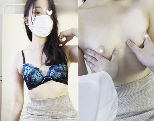 気品あふれる姿に髪は黒のセミロングで上下合わせたお洒落な服、どんなおっぱいが待ってるか悶々しながら問診しました
