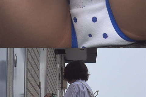 あっ。無防備! 階段を昇る時もスカート押さえないし、靴下直す時も、自販機からジュース取る時なんて白×水色水玉パンツからモッコリまで見せてくれる。