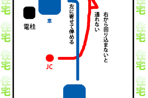 最初にすること、それはターゲットを追い抜かすこと。そして、道の左側ギチギチに駐車します。今回の映像では、電信柱がありましたのでそれを使いました。