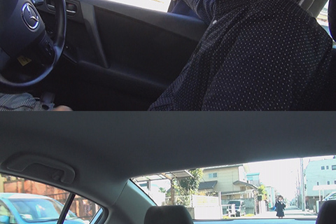 車の中にあるのは勃起チンポとニヤついた表情。