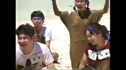 前後、綺麗なお姉さんも泥まみれ、濡れ濡れもいやらしいし、最後の罰ゲームで乳首ピンこ立ちお姉さんがいるのでカットせずにこのままにしました