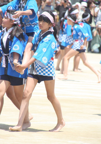 法被姿(法被姿は一部の娘のみです)裸足の騎馬戦と
