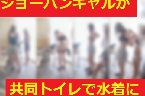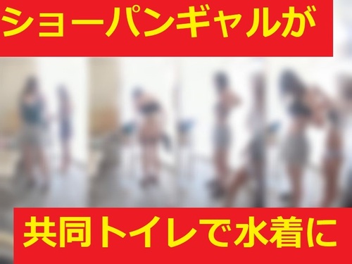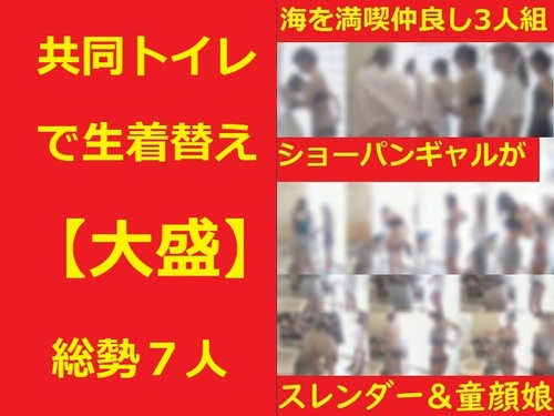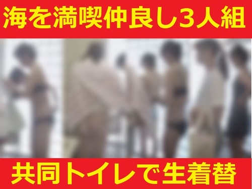 夏を満喫★3人組が共同トイレで着替え