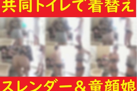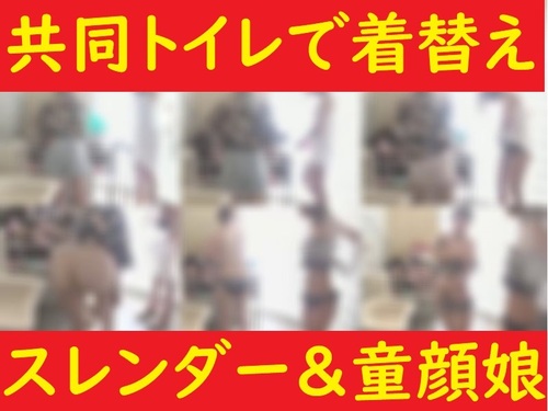 共同トイレで水着に着替え★スレンダー&童顔娘