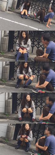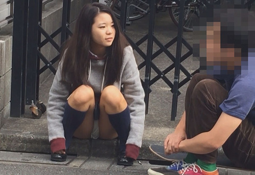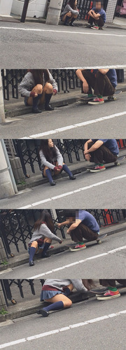 彼氏の方はスケボーに乗っていて、もしバレたら因縁を付けられるのは必至。