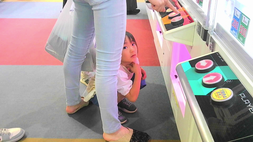 クレーンゲームに熱中のJS1