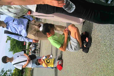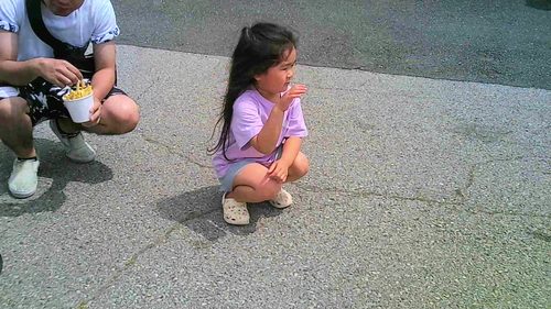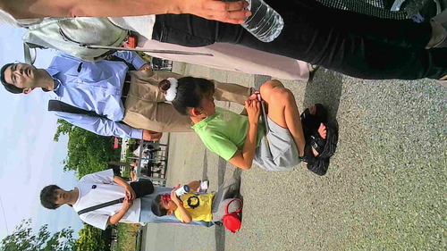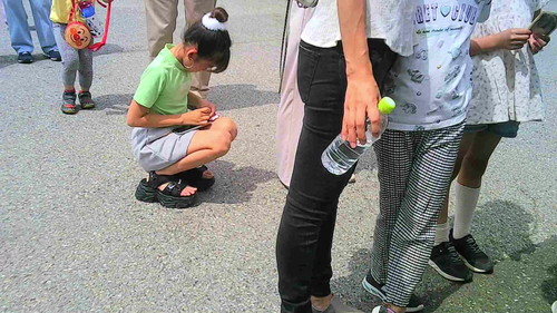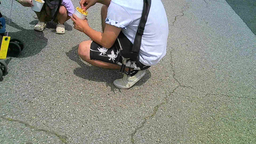 行列でしゃがむJS