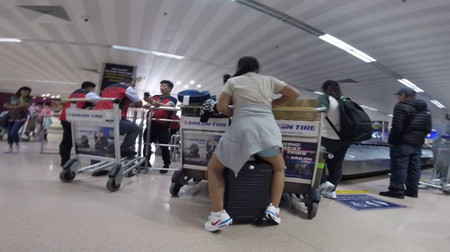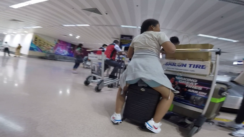 スーツケースに座るショーパンJS