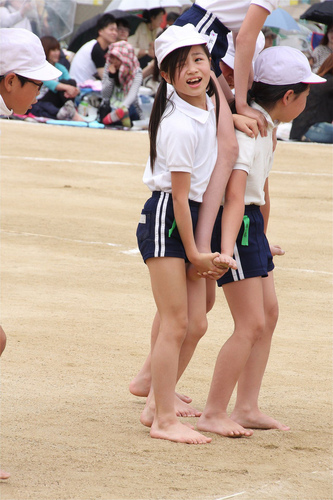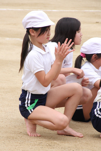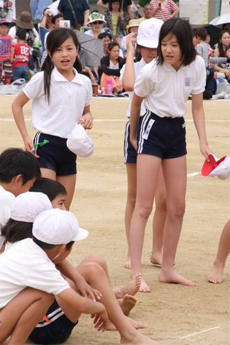 すごく短い娘さんももれなく全員裸足になって騎馬戦。
