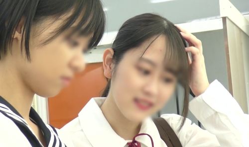 今回は、5本目で撮影した黒髪ショートカットのセーラー服女子○生と一緒にいた、ポニーテールのお嬢様風の女子○生です。