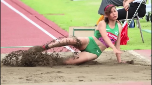 女子大生の走り幅跳び。